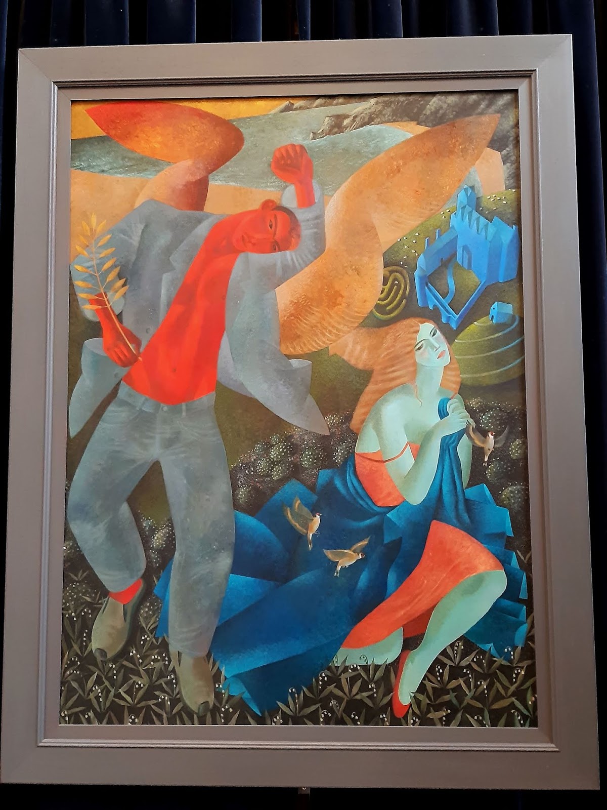 I really like the newly installed painting 'The Virgin of the Goldfinches' by Clive Hicks-Jenkins, though Son the Younger said it reminded him of 'The Green Lady', a copy of which used to hang in his great-aunt's house.