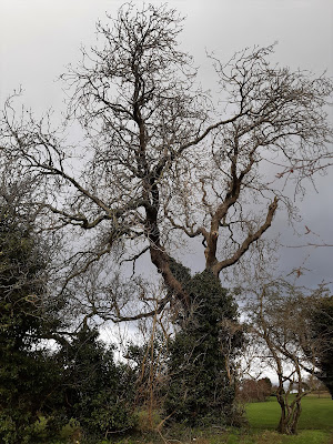 The hollowing oak has changed too, losing the last of its leaves. I realised a few weeks back that it features on the 1844 - 1888 OS map on the Know Your Place website, so it must have been a noteworthy tree even then.